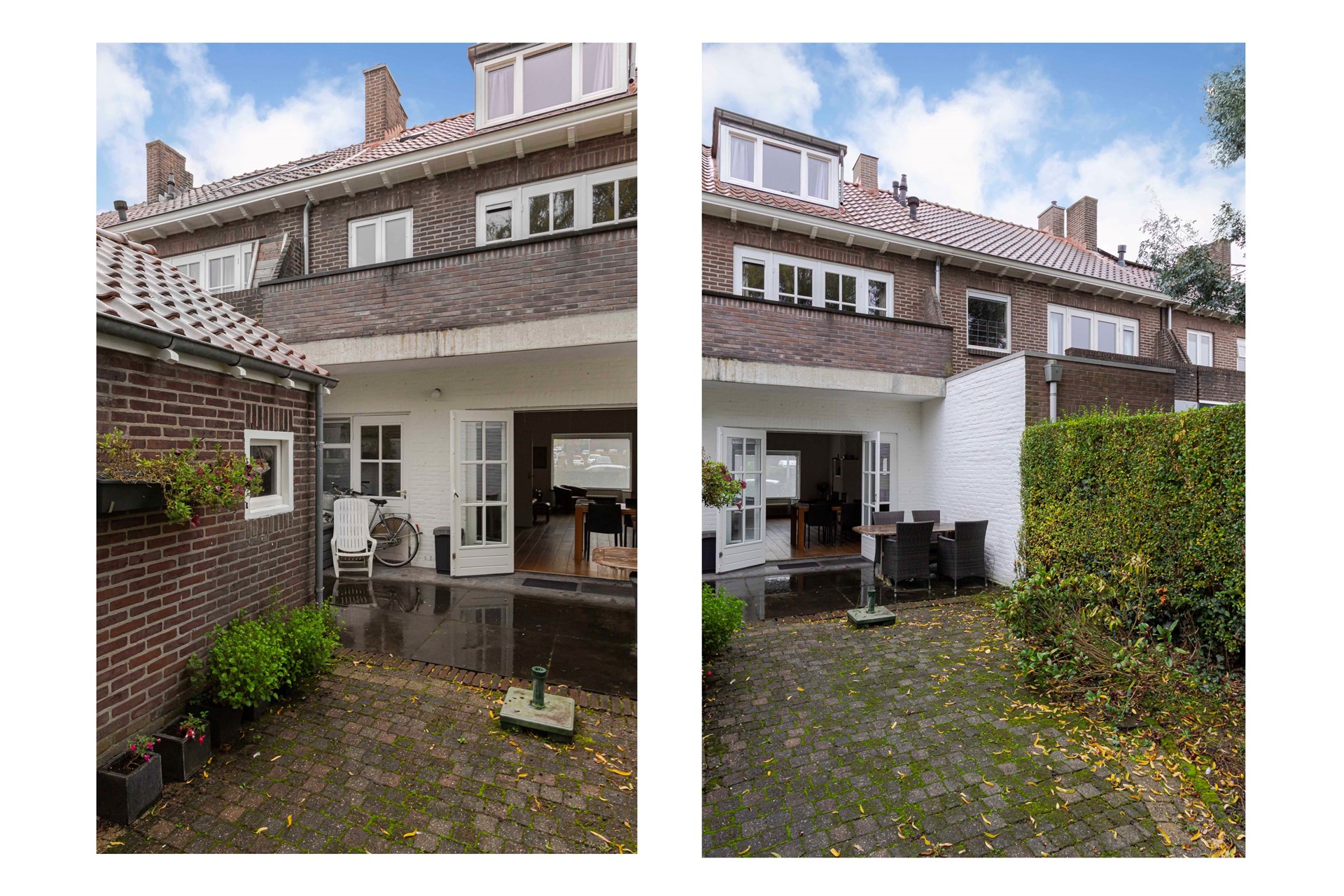 De woning beschikt over zowel een voor- als een achtertuin. De achtertuin is circa 16 meter diep, heerlijk privé en voorzien van een achterom. Door de diepte en de beschutte ligging is het een fijne plek om buiten te zitten. De achtertuin is gericht op het noorden, maar door de ligging en openheid toch verrassend zonnig. De tuin heeft bovendien een praktische buitenberging.