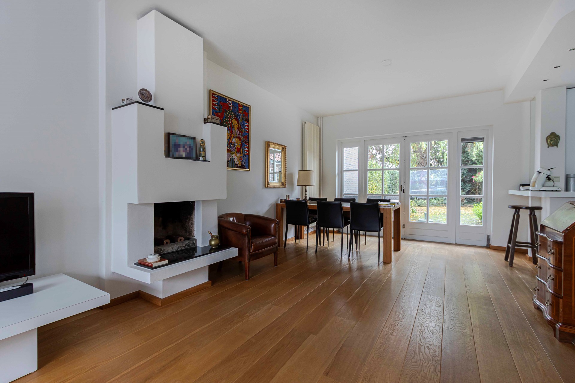 * een lichte woonkamer met open keuken;