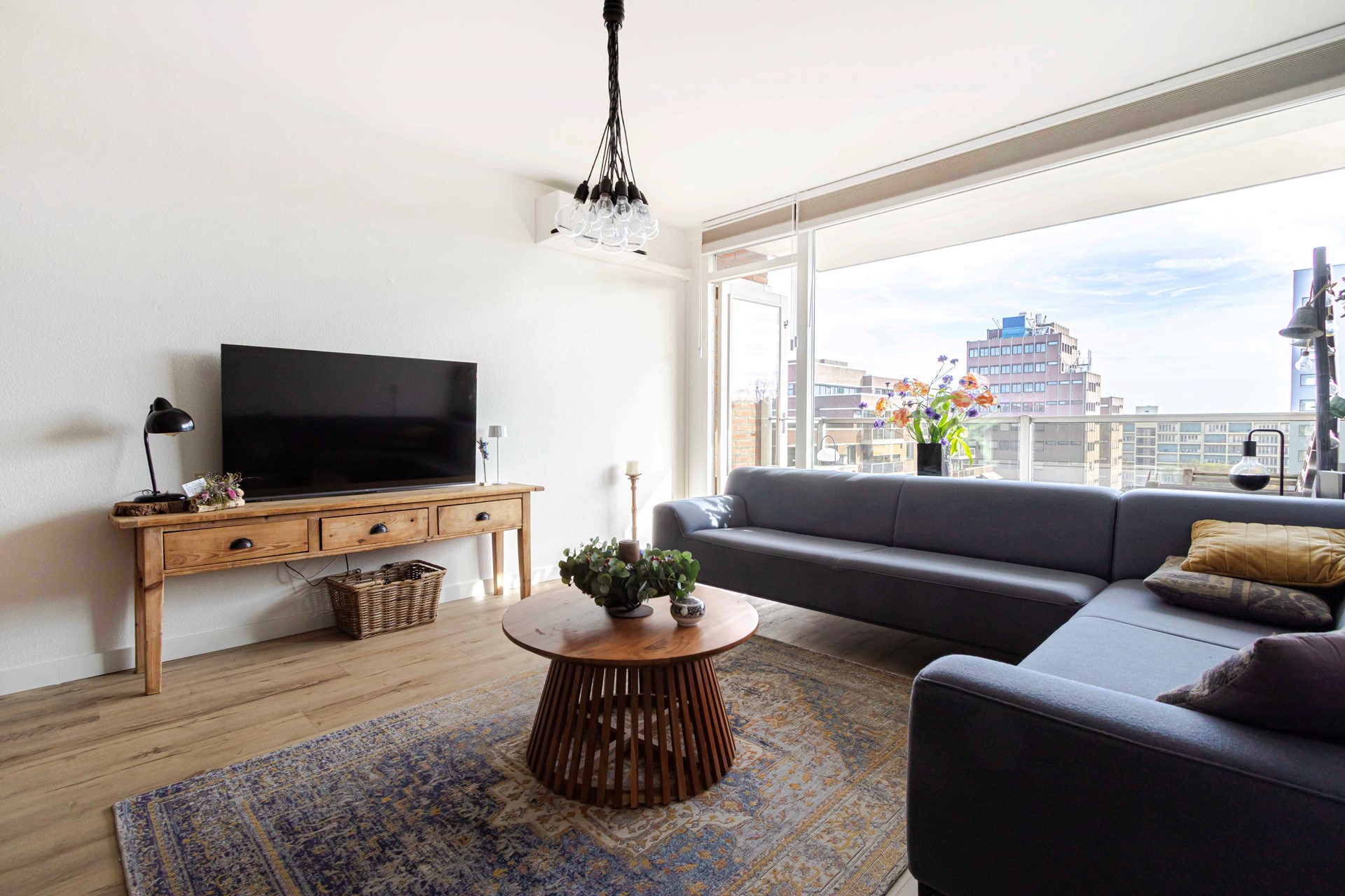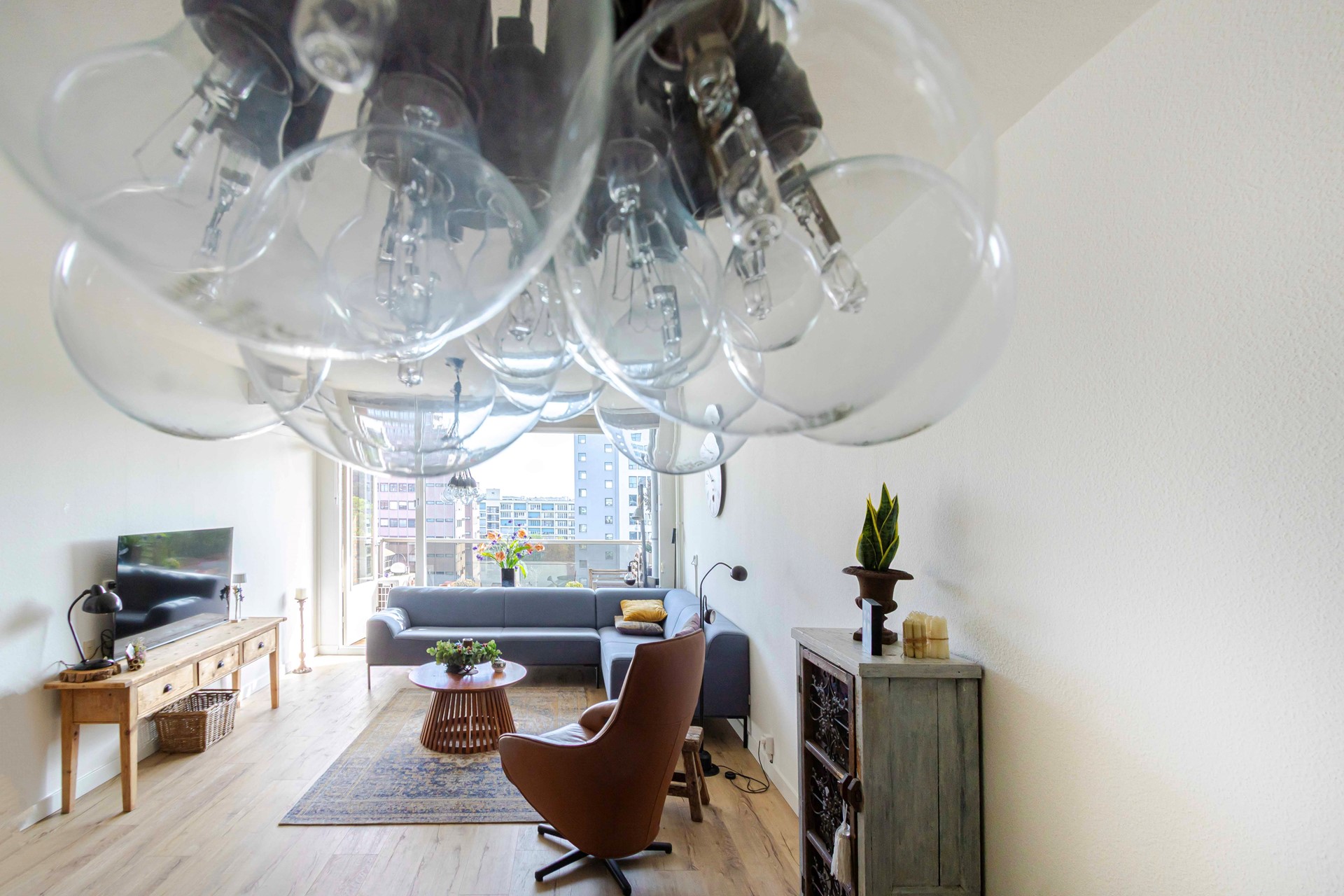 De royale woonkamer met open keuken beslaat gezamenlijk maar liefst circa 38 m² en geniet van een prettige lichtinval dankzij de grote raampartijen. De ruimte biedt volop plaats voor een comfortabele zit- en eethoek en vormt het sfeervolle hart van het appartement. Vanuit de woonkamer is tevens het balkon bereikbaar, een fijne plek om buiten te zitten midden in de stad.