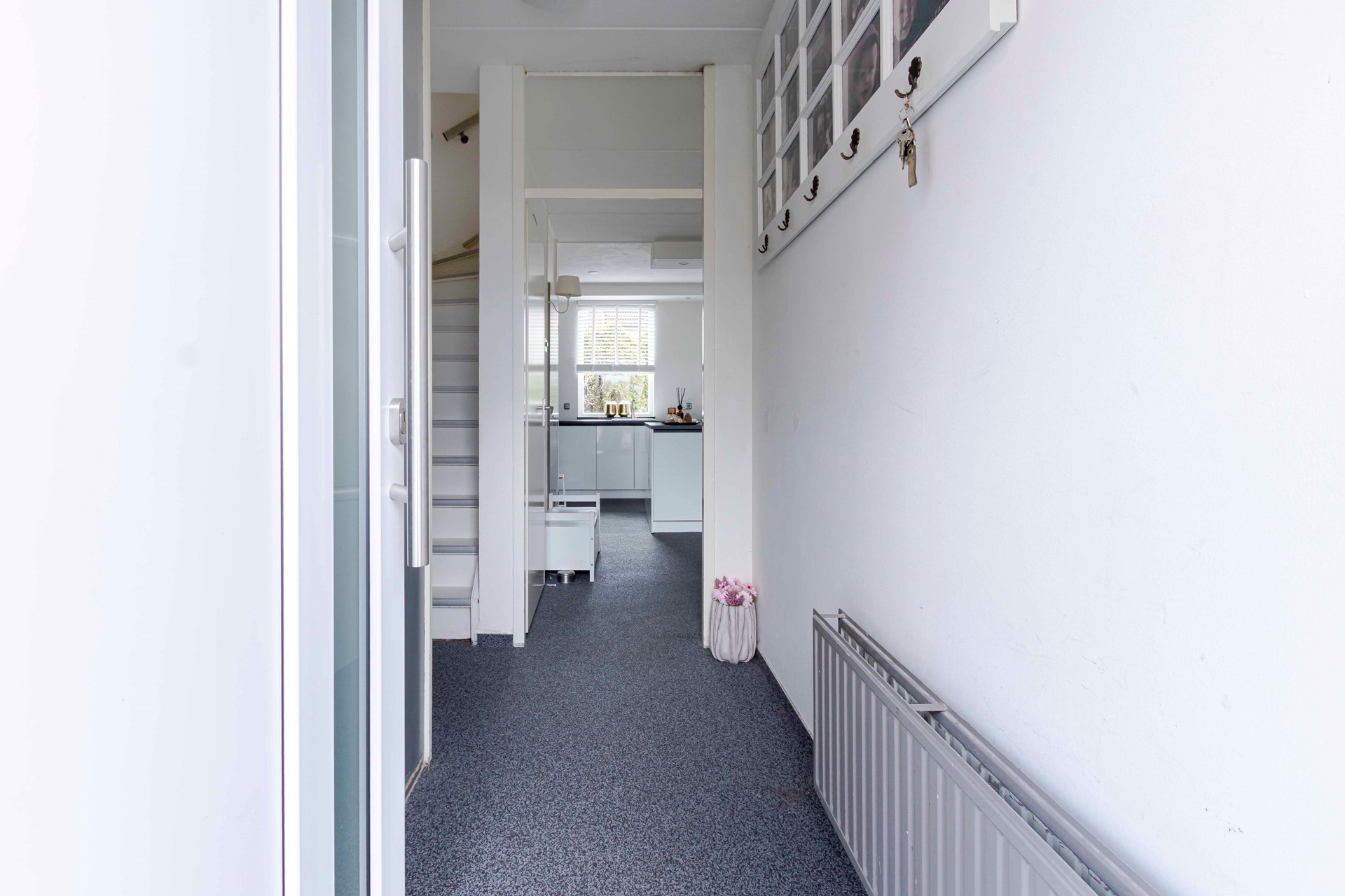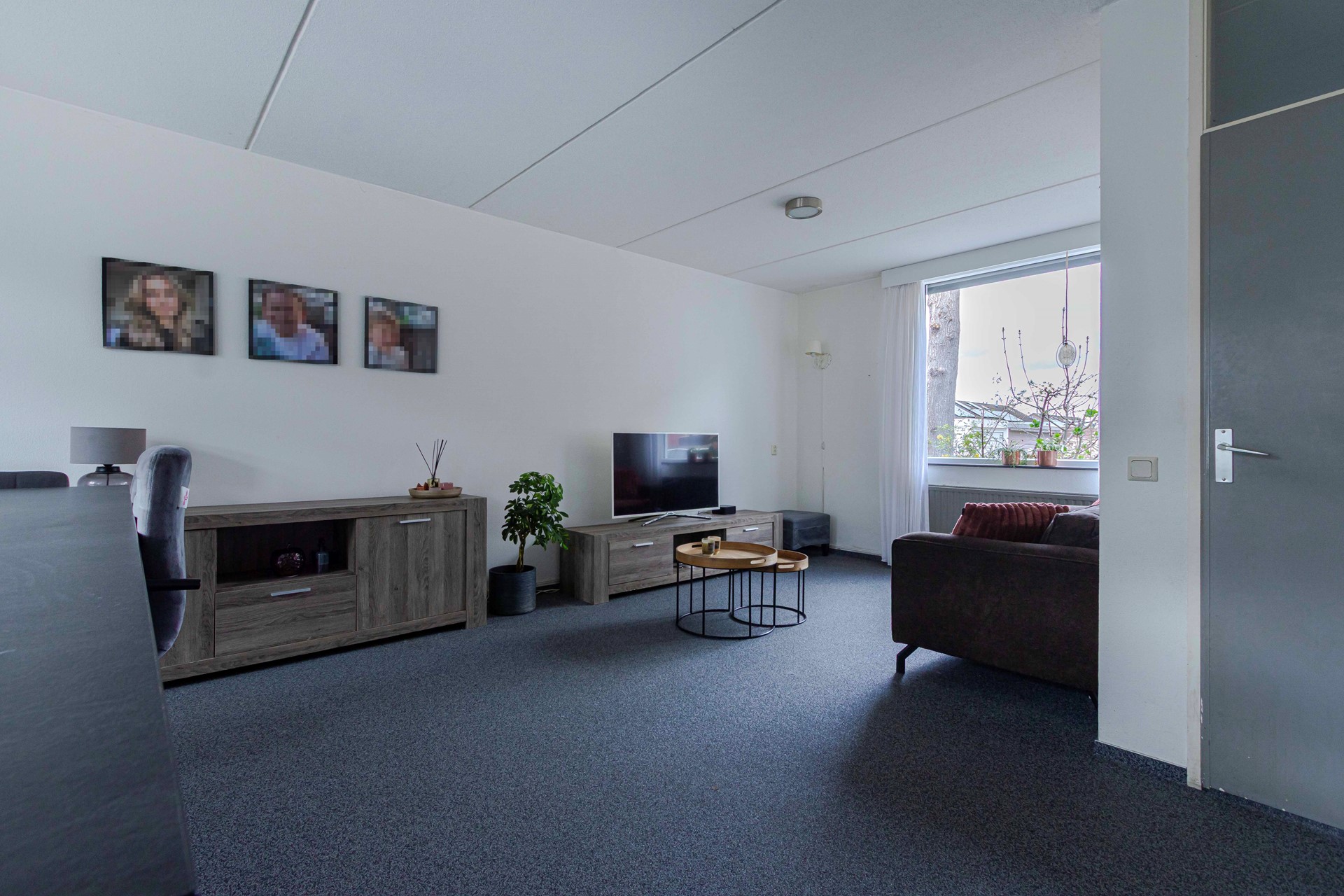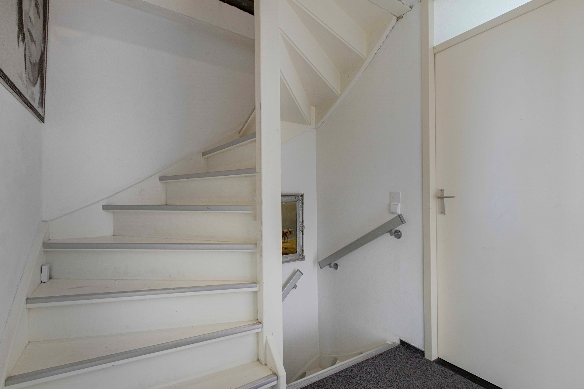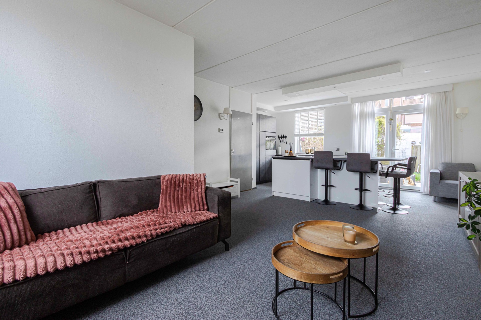 De lichte doorzonwoonkamer vormt een fijne leefruimte met veel natuurlijk daglicht. Daarnaast is er een praktische trapkast aanwezig, ideaal voor extra bergruimte.