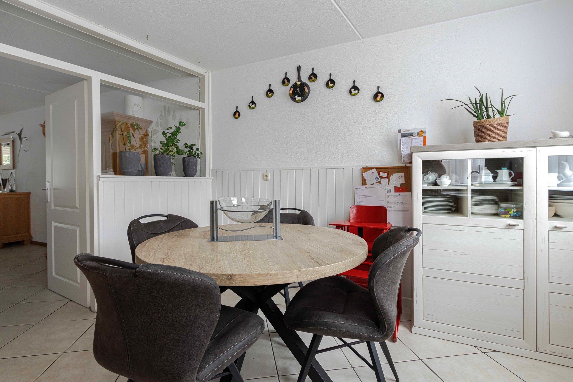 Aan de achterzijde van de woning bevindt zich de serre, die dankzij de glazen wanden het hele jaar door een aangename plek is om te verblijven. Een ideale ruimte om te ontspannen of als extra eet- of zitkamer.