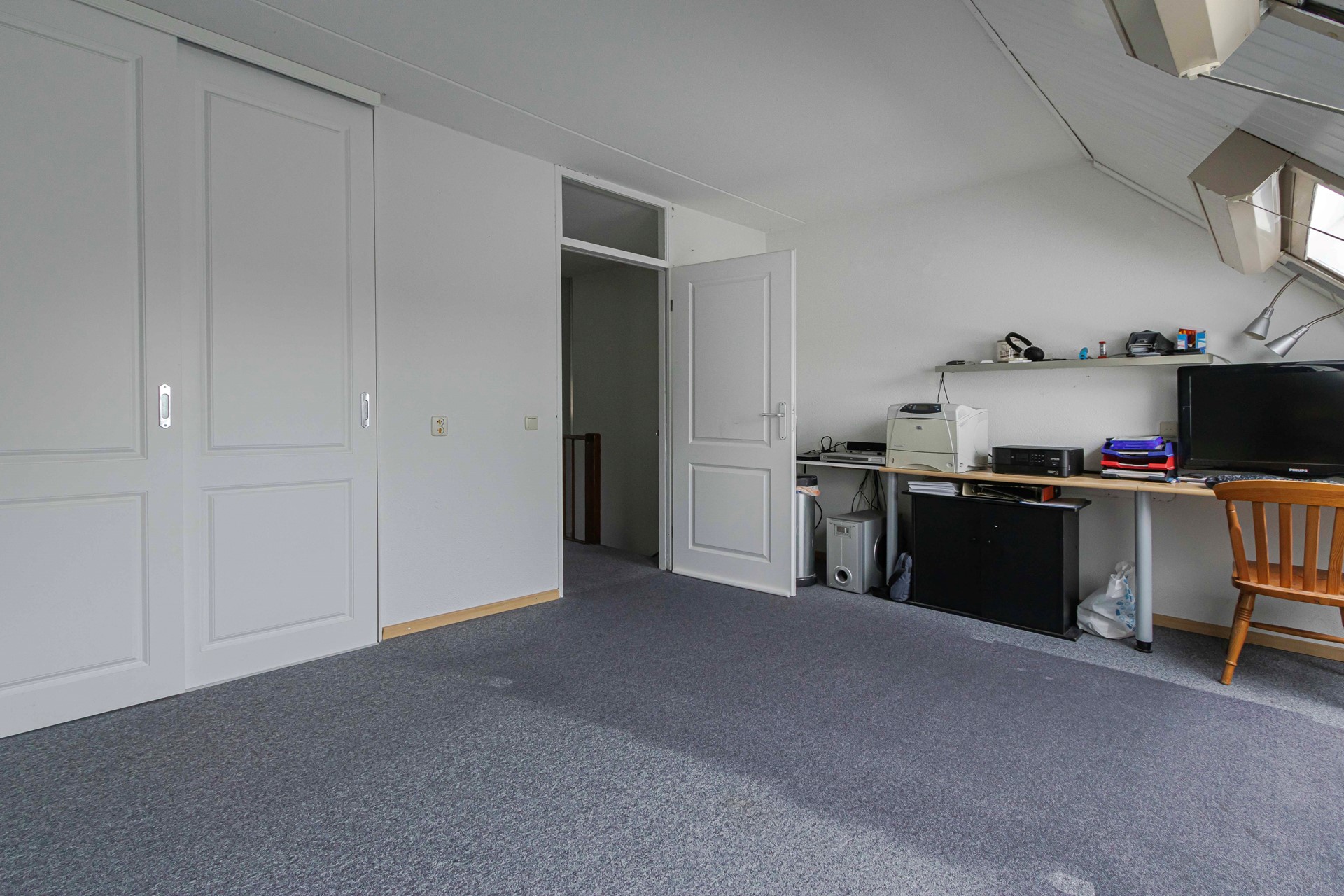 Via een vaste trap bereiken we de tweede, zeer ruime verdieping. De overloop biedt toegang tot twee slaapkamers en een aparte bergruimte, waar ook de CV-ketel is geplaatst. De slaapkamer aan de voorzijde is bijzonder ruim en veelzijdig in te richten. Denk bijvoorbeeld aan een thuiswerkplek, hobbykamer of een extra ruime slaapkamer. De slaapkamer aan de achterzijde beschikt over twee dakramen, wat zorgt voor veel natuurlijk licht. Daarnaast is er handige inbouwkast- en bergruimte aanwezig. Deze verdieping biedt volop mogelijkheden voor grotere gezinnen of wie extra leefruimte zoekt.