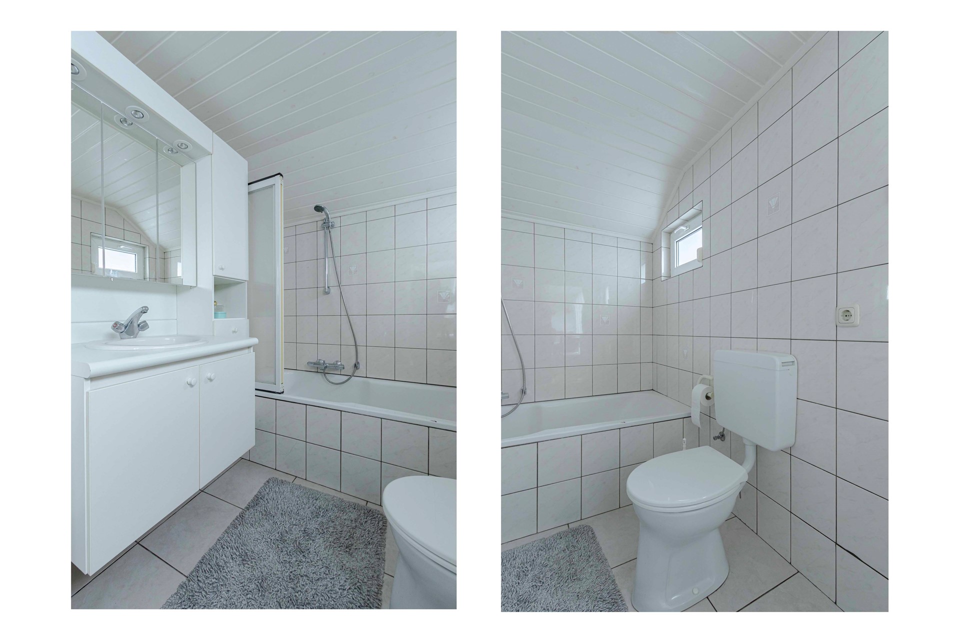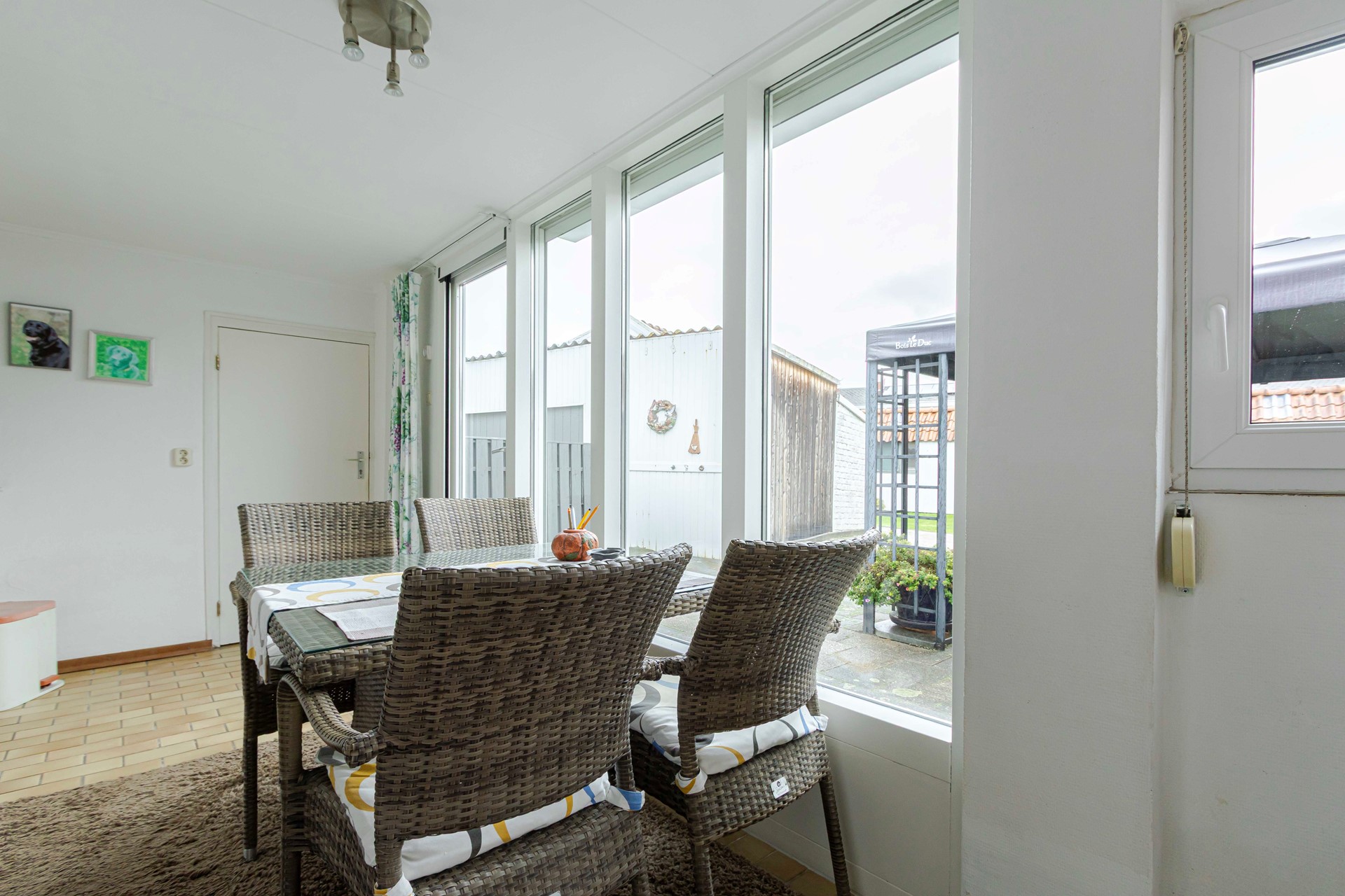 Aansluitend aan de keuken bevindt zich de bijkeuken/tuinkamer van ruim 10 m², eveneens voorzien van een tegelvloer en een tweede keukenblok. Hier bevinden zich de opstelplaatsen voor de wasmachine, vaatwasser en de CV-ketel. Vanuit deze ruimte is tevens de badkamer bereikbaar, ingericht met een wastafelmeubel, ligbad en toilet. Tevens is hier een extra wasmachineaansluiting aanwezig.