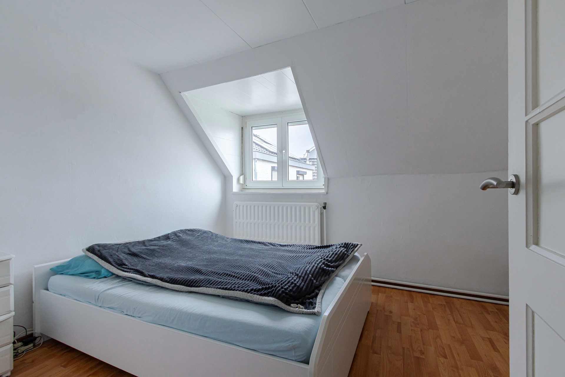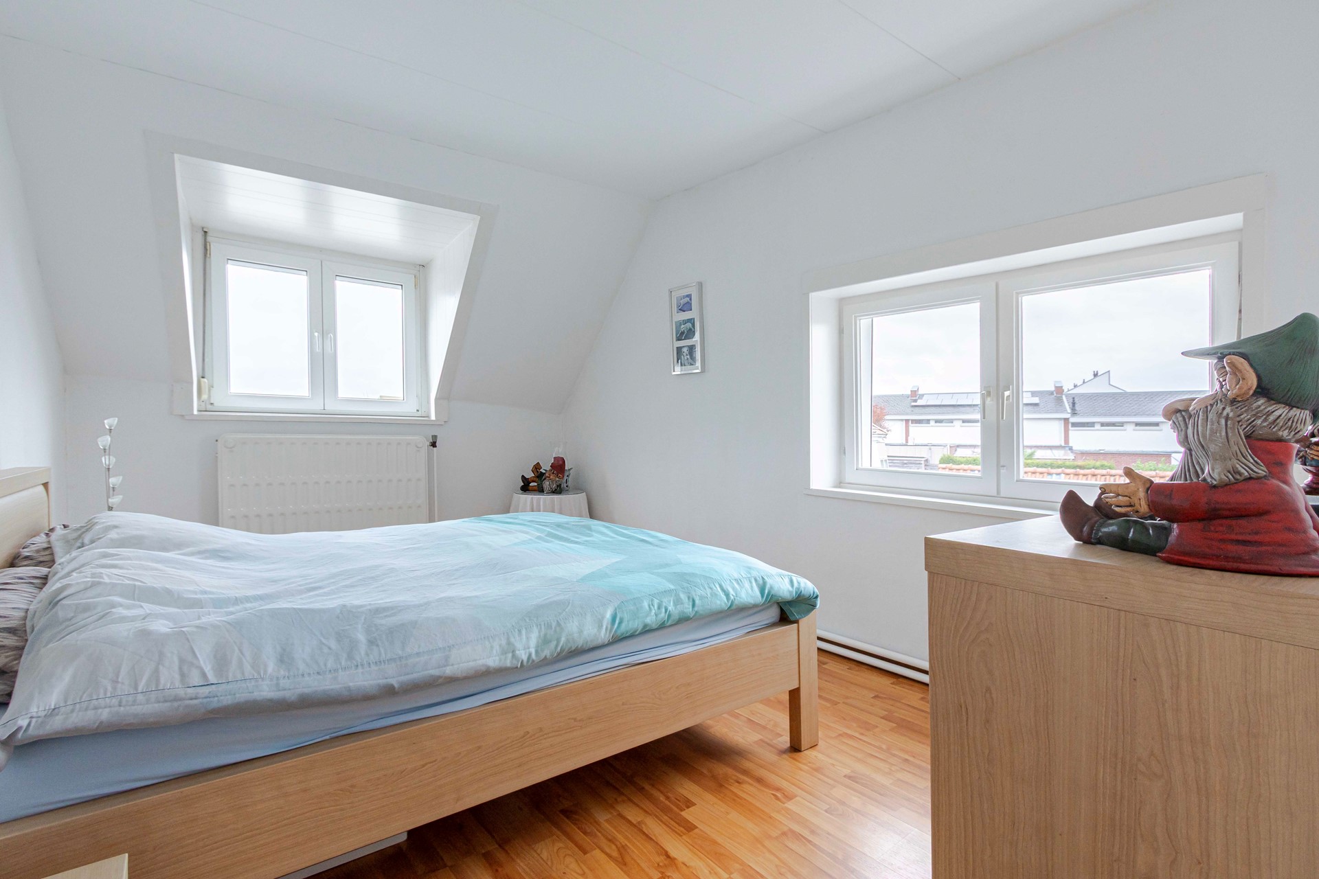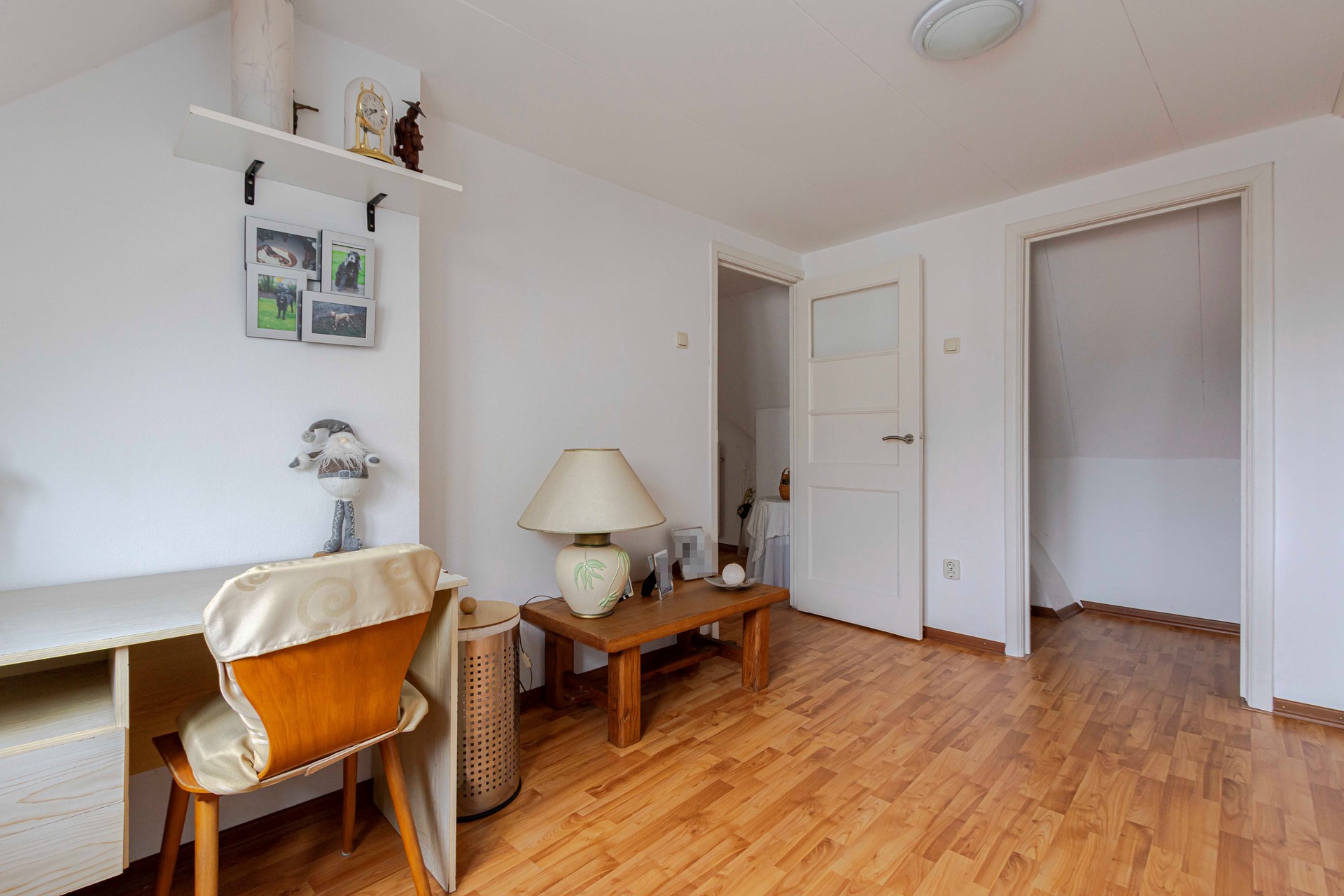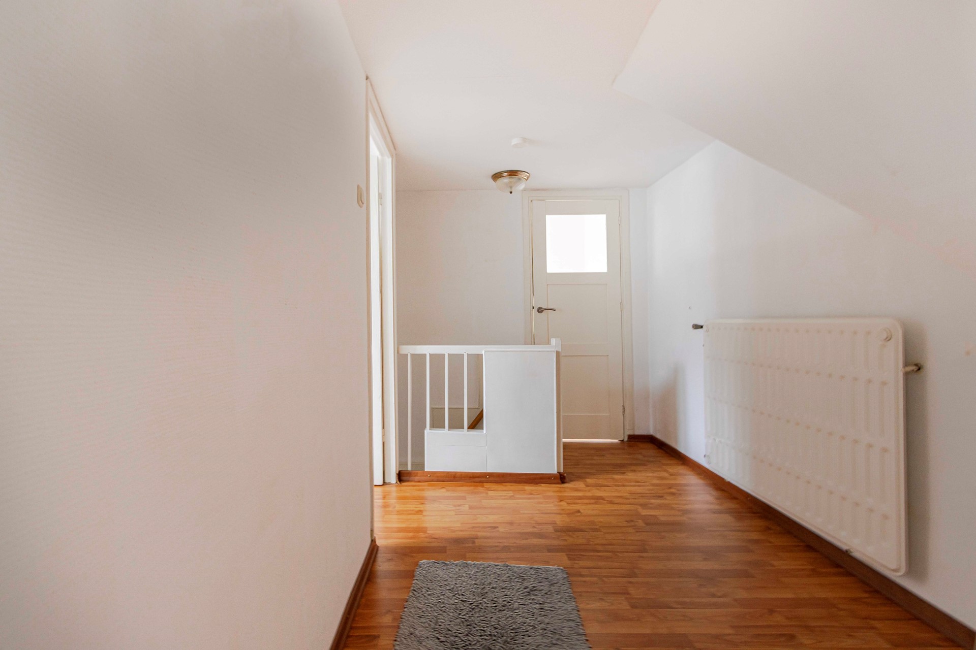 Via de trapopgang bereiken we de overloop op de eerste verdieping. Vanaf hier zijn drie slaapkamers toegankelijk. De eerste slaapkamer heeft een oppervlakte van circa 9 m² en bevindt zich aan de voorzijde van de woning. De tweede slaapkamer heeft zicht op de achtertuin en is ca. 13 m²; beide zijn voorzien van praktische inbouwkasten. De derde slaapkamer heeft een oppervlakte van circa 10 m² en ligt aan de zijkant van de woning.