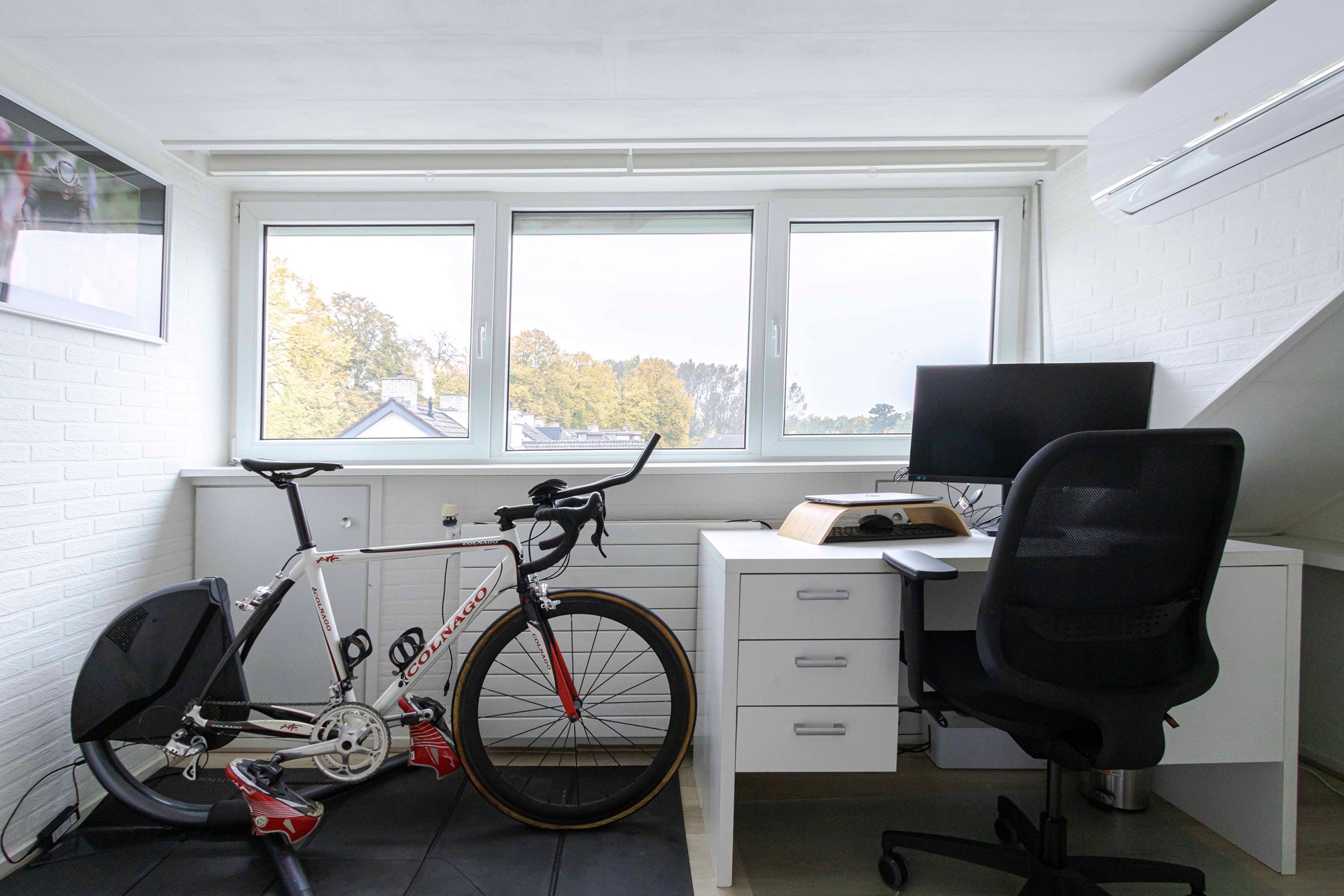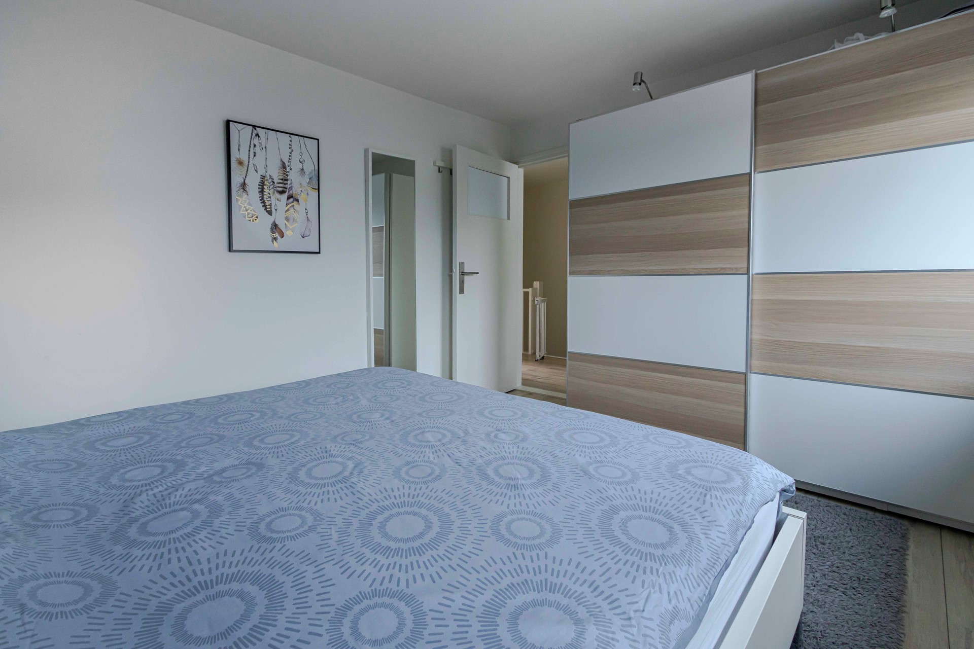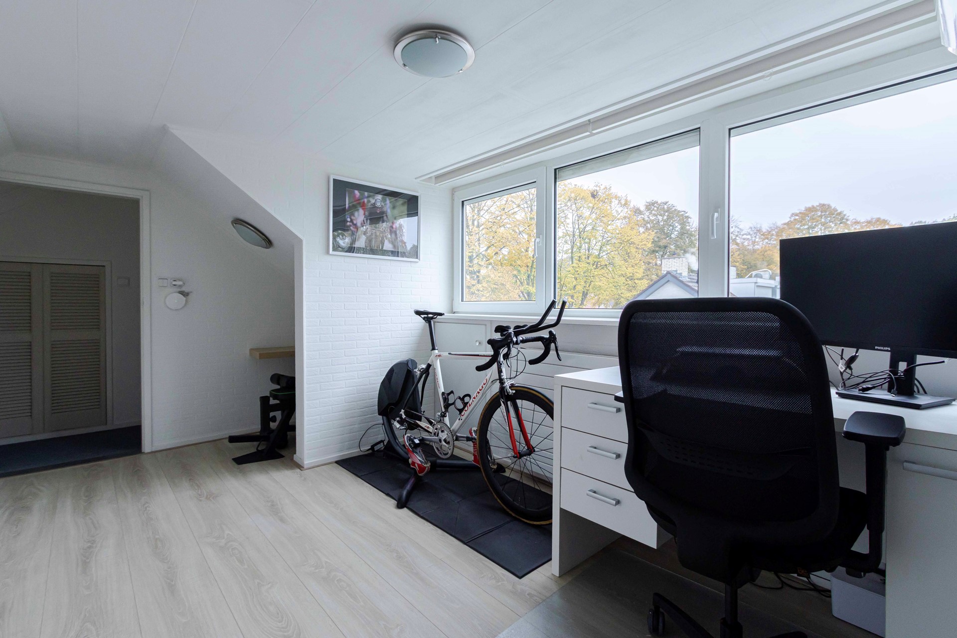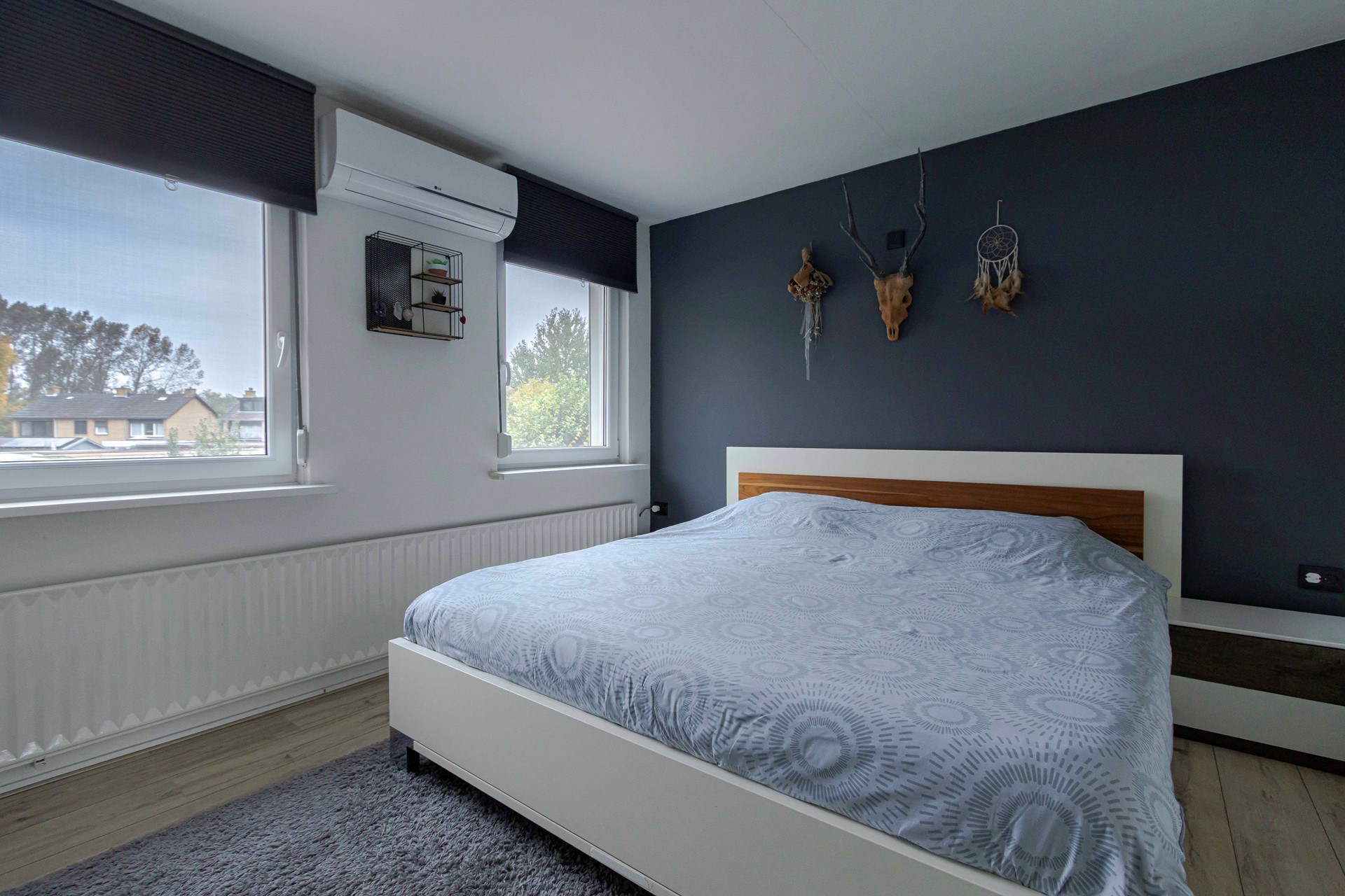 De derde slaapkamer is voorzien van een dakkapel, wat zorgt voor extra ruimte, comfort en veel natuurlijk daglicht. De kamer is mooi afgewerkt en beschikt over handige inbouwkasten en een airco. Met een oppervlakte van ruim 20 m² biedt deze slaapkamer volop ruimte.