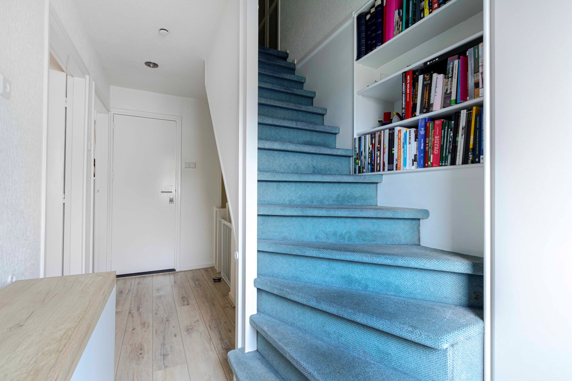 Via een vaste trap met een inbouwboekenkast bereiken we de overloop op de tweede verdieping. Op deze overloop is tevens de opstelplaats voor de cv-ketel gesitueerd. Vanuit deze ruimte is de derde slaapkamer toegankelijk.